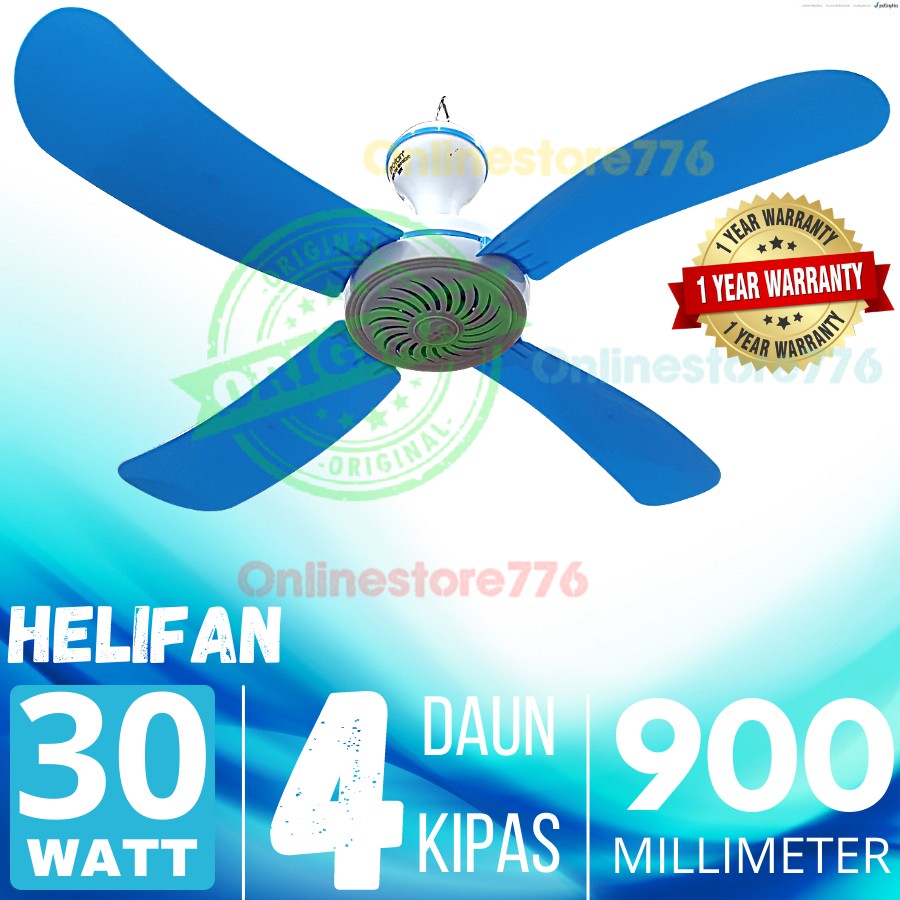 Kipas Angin Gantung 30 W Helifan 30 Watt 4 Baling Sumber : shopee.co.id